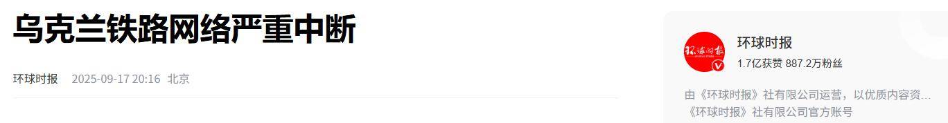 1.《乌克兰铁路网络严重中断》2025-09-17 20:16来源:环球时报