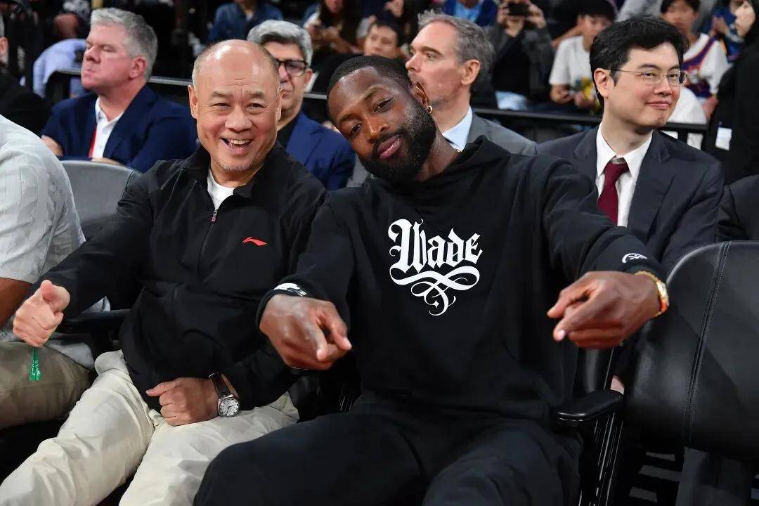 除此之外出现在观众席上的身影还有著名的体操运动员、李宁品牌创始人李宁,并与韦德惊喜合照,不得不说NBA比赛真是一场大型的社交活动。李宁这次来也是带着商业眼光的,李宁作为一个运动品牌需要NBA来打开更大的市场,10月11日,李宁品牌就官宣正式签约NBA新秀控卫叶戈尔·杰明。