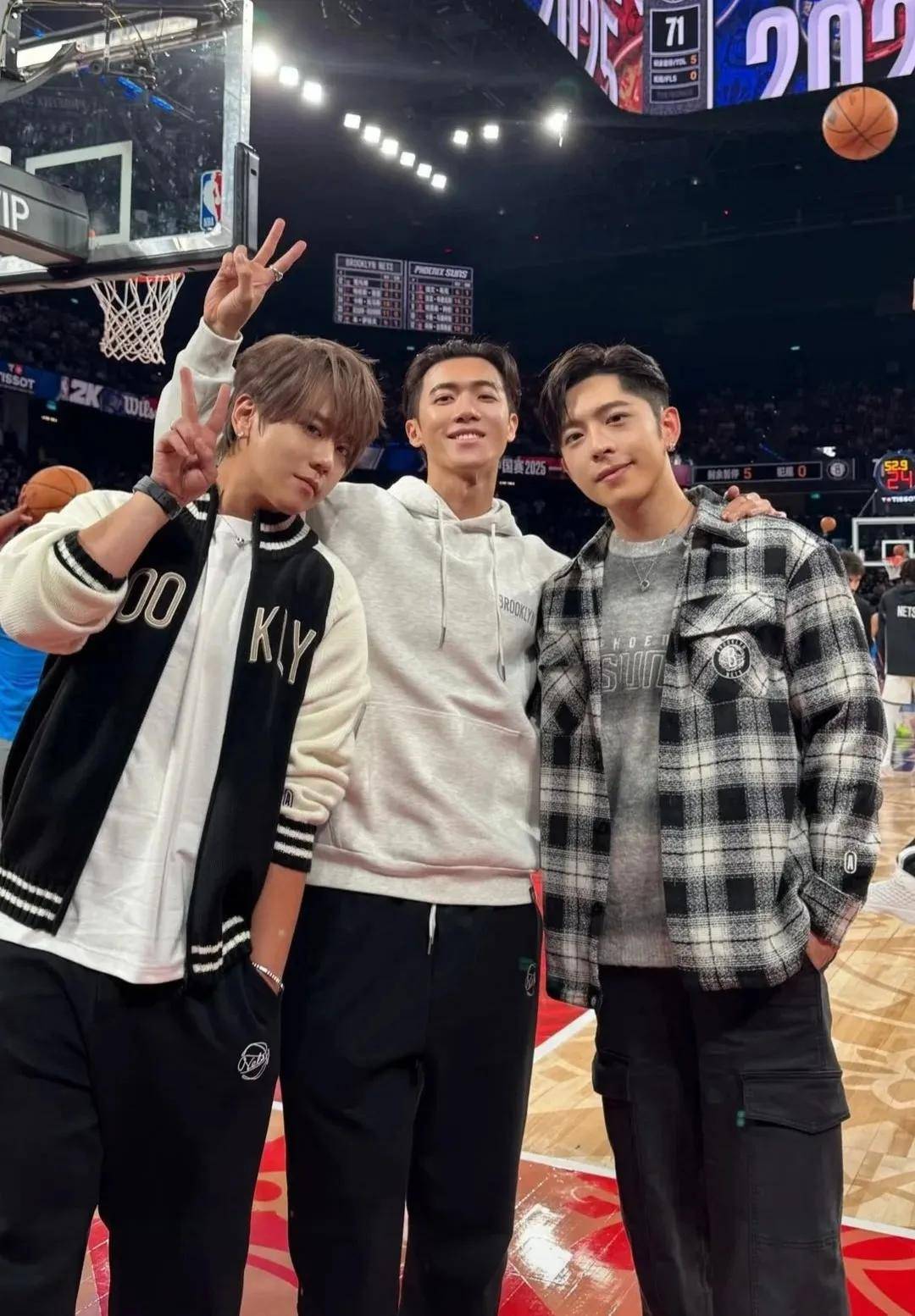 香港顶流姜涛居然也来了,还在NBA球迷日作为表演嘉宾,与吕爵安、邱士缙献唱了多首歌曲,中场互动环节上场姜涛一记了三分球,引发看台一阵欢呼。