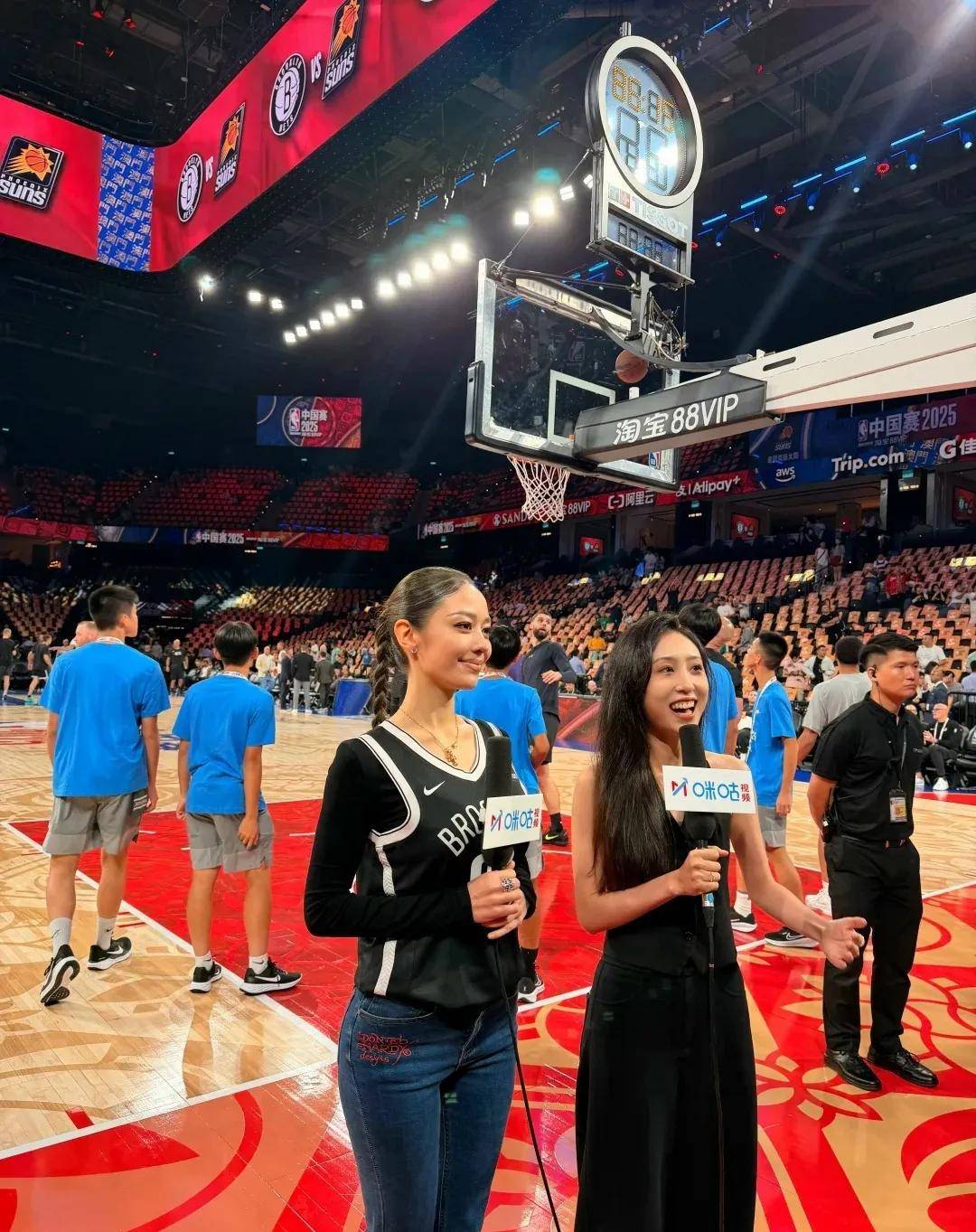 作为受邀观赛嘉宾,吉娜也现身赛场,当天她身穿88号球衣,搭配紧身牛仔裤,头扎马尾辫,还在赛前与篮网队的中国球员曾凡博进行了长时间的交流,为他加油打气。