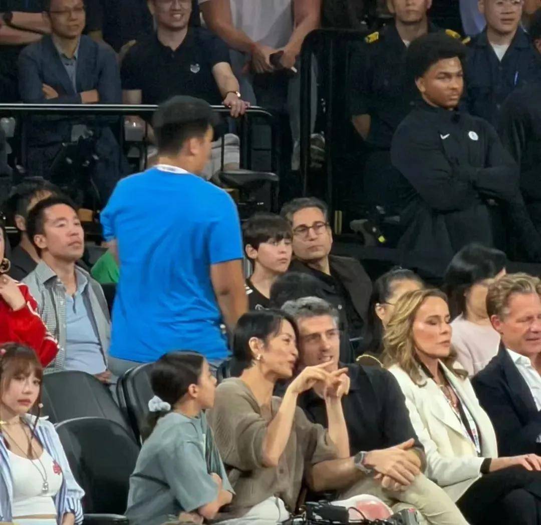 梁朝伟和刘嘉玲也一同到场观赛,梁朝伟在场内显得有些拘谨,手握毛巾正襟危坐,一如既往的社恐。刘嘉玲则戴着篮网队帽子,热情地与周围名人交流,赛后两人还出现在澳门永利皇宫超跑展。